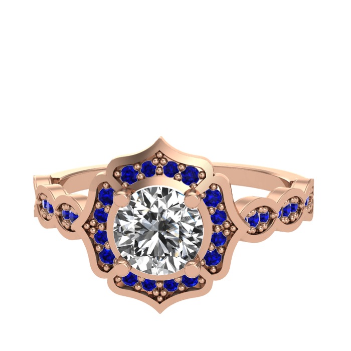 Pırlanta ve lab safir 925 ayar rose altın kaplama gümüş yüzük (0.92 karat)