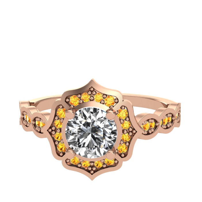 Pırlanta ve sitrin 925 ayar rose altın kaplama gümüş yüzük (0.92 karat)