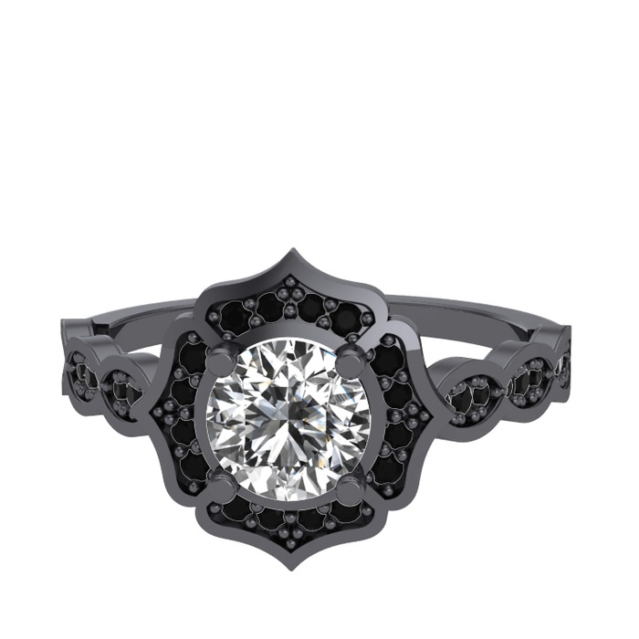 Pırlanta ve siyah zirkon 925 ayar siyah rodyum kaplama gümüş yüzük (0.92 karat)