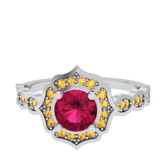 Rodolit garnet ve sitrin 14 ayar beyaz altın yüzük