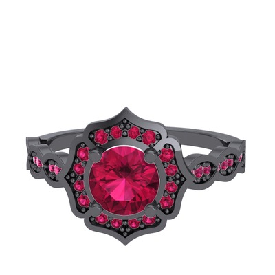 Rodolit garnet 925 ayar siyah rodyum kaplama gümüş yüzük