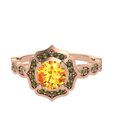 Sitrin ve peridot 14 ayar rose altın yüzük