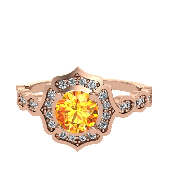 Sitrin ve swarovski 8 ayar rose altın yüzük