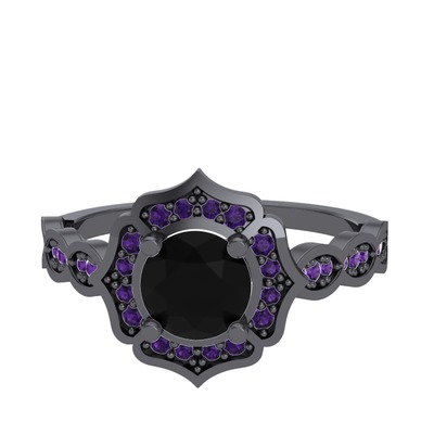 Siyah zirkon ve ametist 925 ayar siyah rodyum kaplama gümüş yüzük