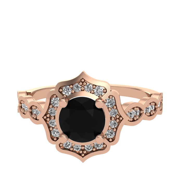 Siyah zirkon ve beyaz zirkon 925 ayar rose altın kaplama gümüş yüzük