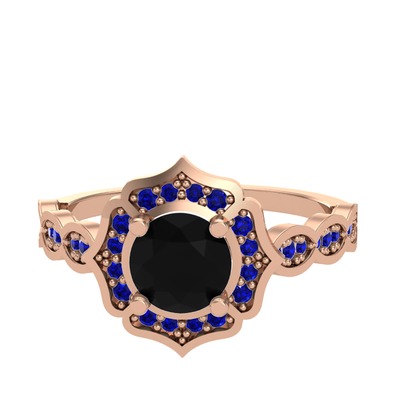 Siyah zirkon ve lab safir 18 ayar rose altın yüzük