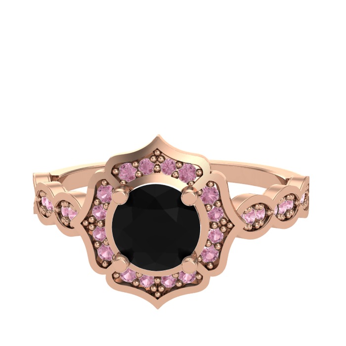 Siyah zirkon ve pembe kuvars 925 ayar rose altın kaplama gümüş yüzük