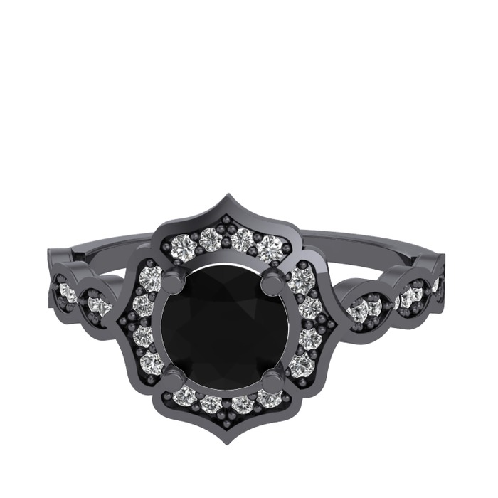 Siyah zirkon ve swarovski 925 ayar siyah rodyum kaplama gümüş yüzük
