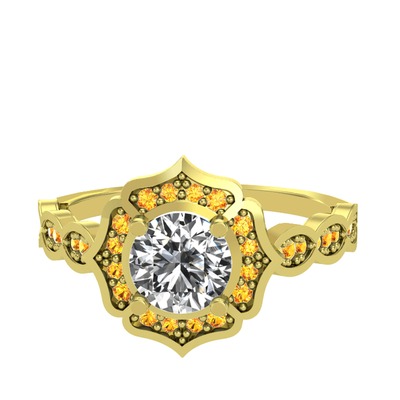 Swarovski ve sitrin 925 ayar altın kaplama gümüş yüzük