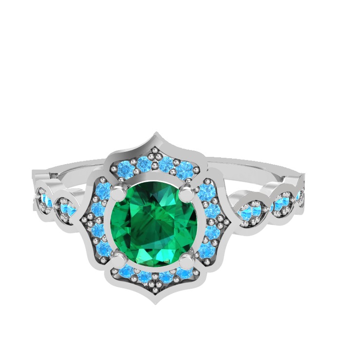 Yeşil kuvars ve akuamarin 925 ayar gümüş yüzük