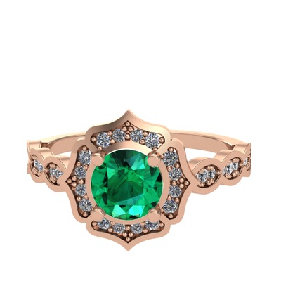 Yeşil kuvars ve pırlanta 18 ayar rose altın yüzük (0.374 karat)