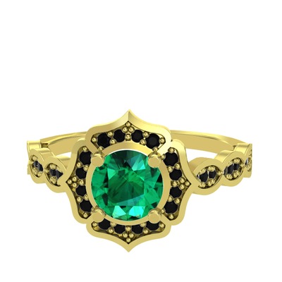 Yeşil kuvars ve siyah zirkon 18 ayar altın yüzük