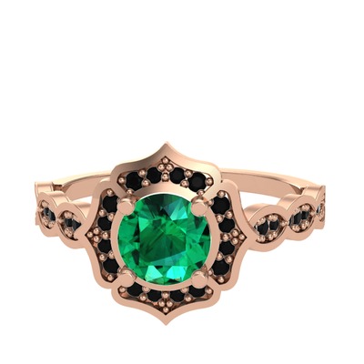 Yeşil kuvars ve siyah zirkon 925 ayar rose altın kaplama gümüş yüzük