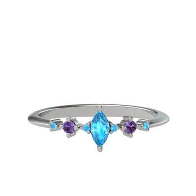 Akuamarin ve ametist 8 ayar beyaz altın yüzük