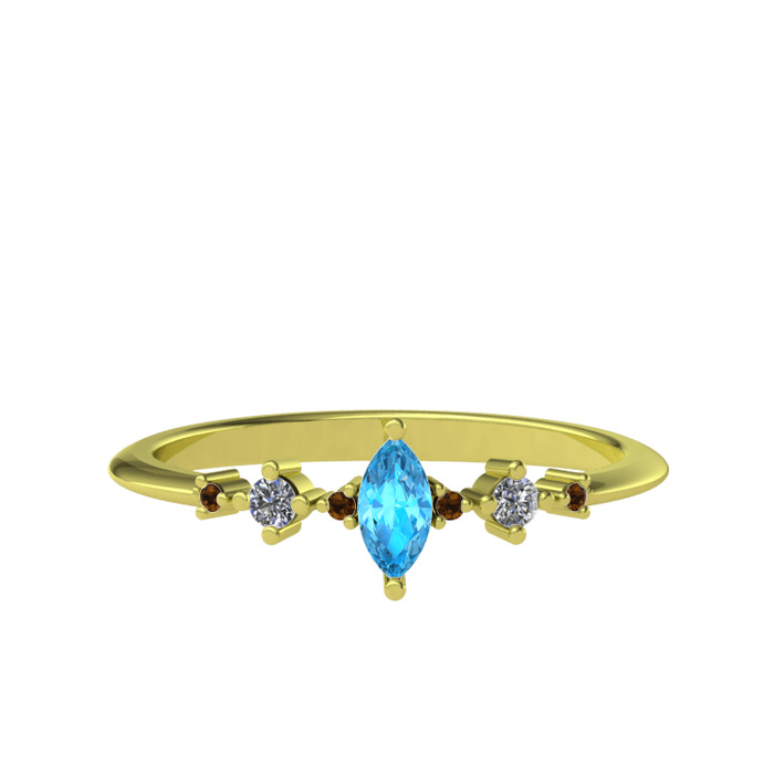 Akuamarin, beyaz zirkon ve dumanlı kuvars 18 ayar altın yüzük