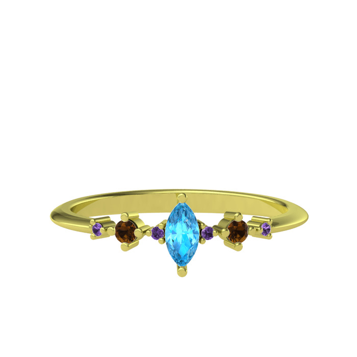Akuamarin, dumanlı kuvars ve ametist 925 ayar altın kaplama gümüş yüzük