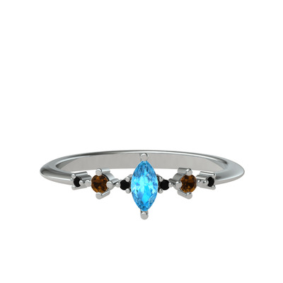Akuamarin, dumanlı kuvars ve siyah zirkon 8 ayar beyaz altın yüzük