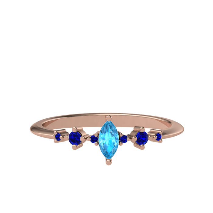 Akuamarin ve lab safir 14 ayar rose altın yüzük