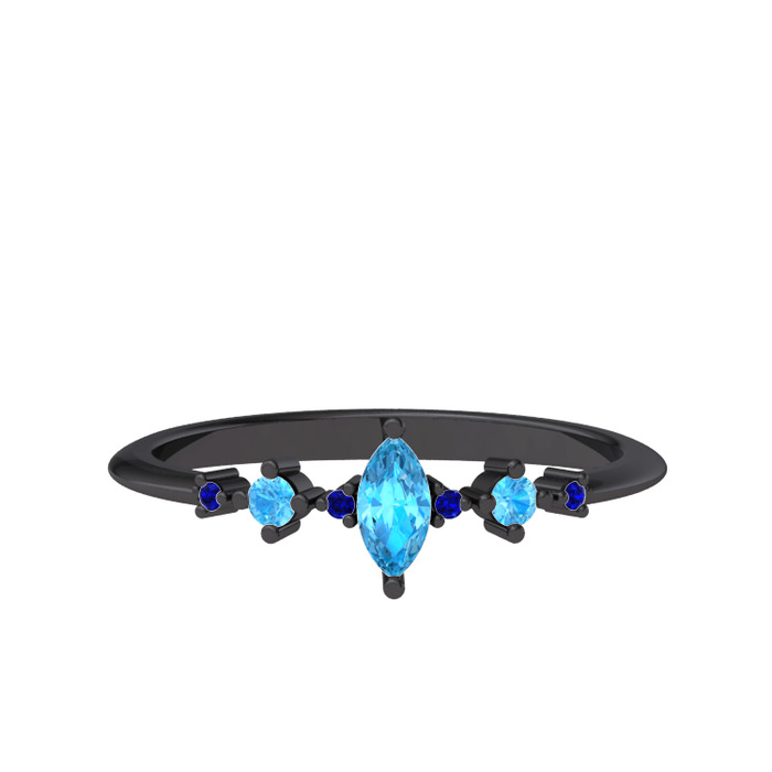 Akuamarin ve lab safir 925 ayar siyah rodyum kaplama gümüş yüzük