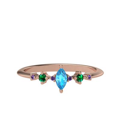 Akuamarin, yeşil kuvars ve ametist 14 ayar rose altın yüzük