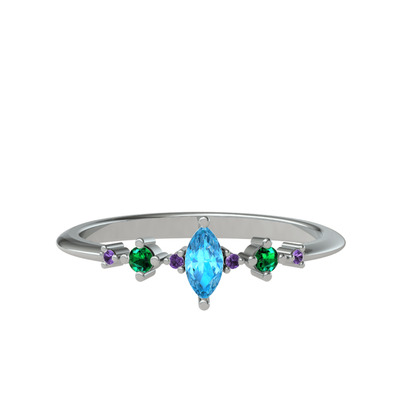Akuamarin, yeşil kuvars ve ametist 18 ayar beyaz altın yüzük