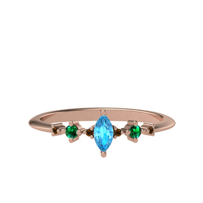 Akuamarin, yeşil kuvars ve dumanlı kuvars 8 ayar rose altın yüzük