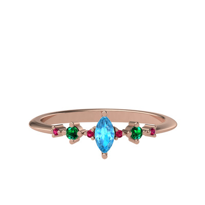 Akuamarin, yeşil kuvars ve rodolit garnet 18 ayar rose altın yüzük