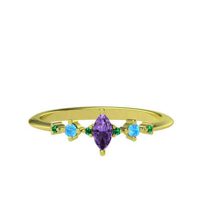 Ametist, akuamarin ve yeşil kuvars 14 ayar altın yüzük