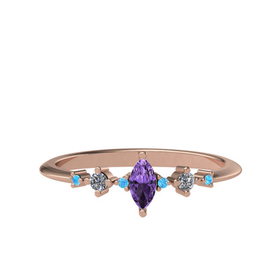 Ametist, beyaz zirkon ve akuamarin 14 ayar rose altın yüzük