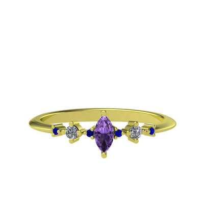 Ametist, beyaz zirkon ve lab safir 925 ayar altın kaplama gümüş yüzük