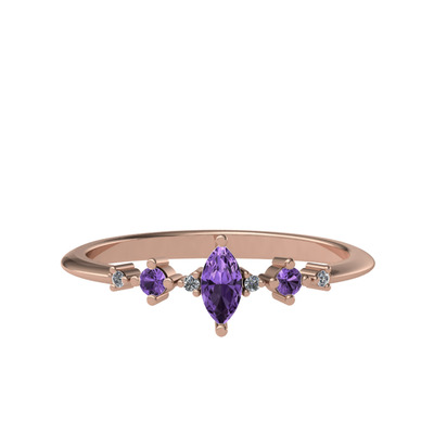 Ametist ve beyaz zirkon 925 ayar rose altın kaplama gümüş yüzük