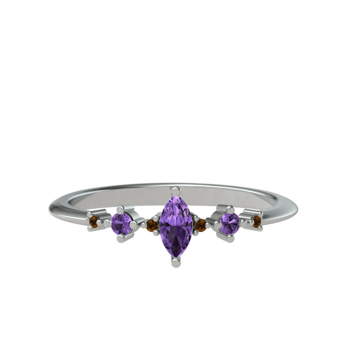 Ametist ve dumanlı kuvars 14 ayar beyaz altın yüzük