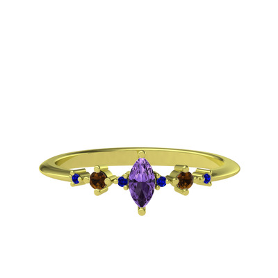 Ametist, dumanlı kuvars ve lab safir 14 ayar altın yüzük
