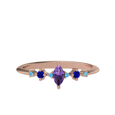 Ametist, lab safir ve akuamarin 14 ayar rose altın yüzük
