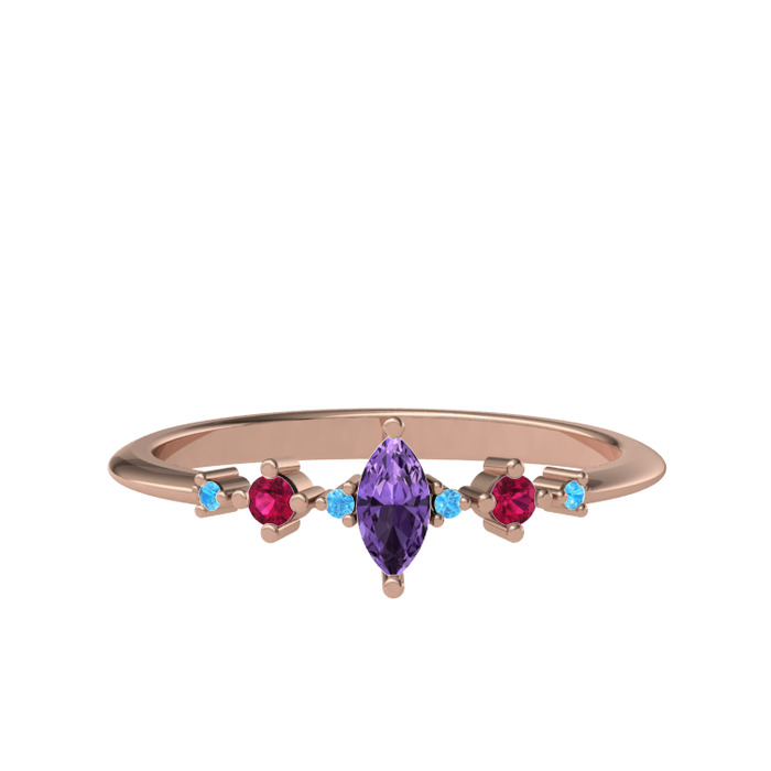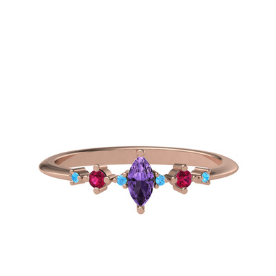 Ametist, rodolit garnet ve akuamarin 18 ayar rose altın yüzük