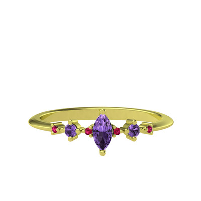 Ametist ve rodolit garnet 925 ayar altın kaplama gümüş yüzük