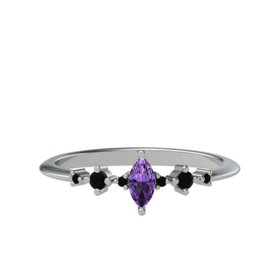 Ametist ve siyah zirkon 8 ayar beyaz altın yüzük