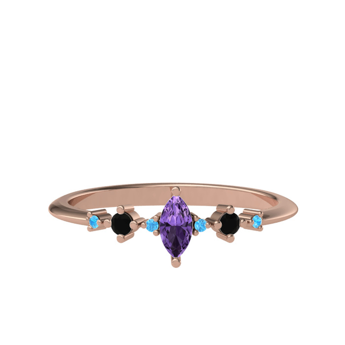 Ametist, siyah zirkon ve akuamarin 14 ayar rose altın yüzük