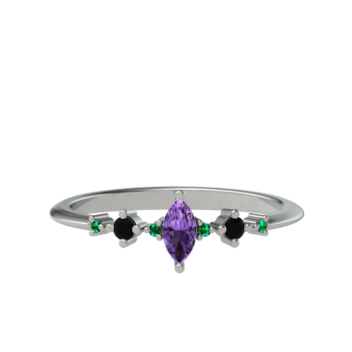 Ametist, siyah zirkon ve yeşil kuvars 18 ayar beyaz altın yüzük