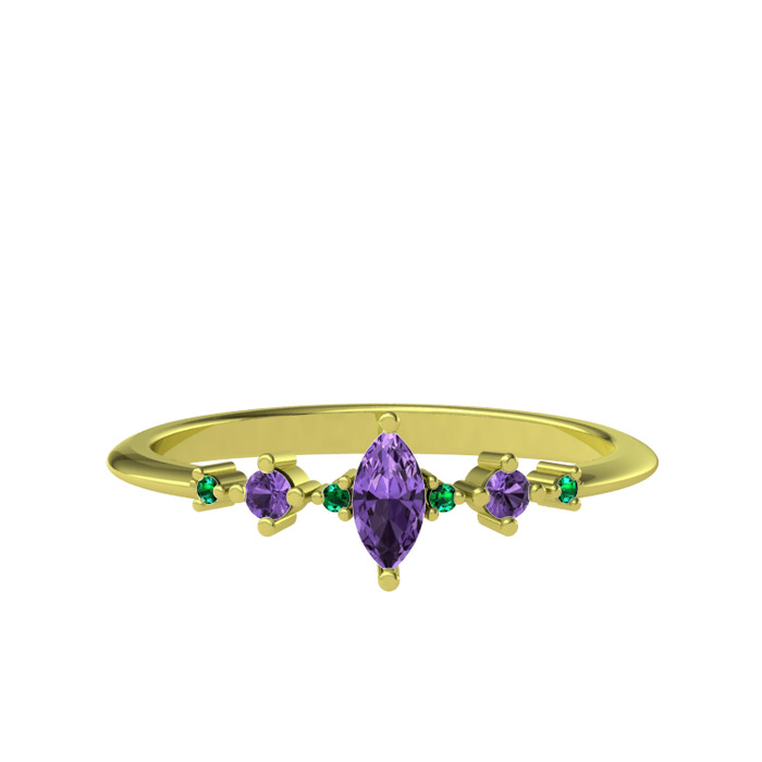 Ametist ve yeşil kuvars 14 ayar altın yüzük