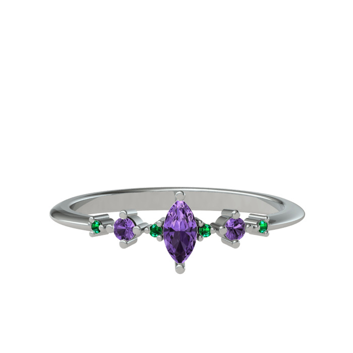 Ametist ve yeşil kuvars 18 ayar beyaz altın yüzük