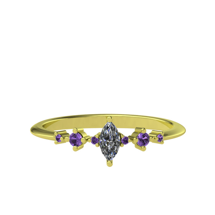 Beyaz zirkon ve ametist 8 ayar altın yüzük