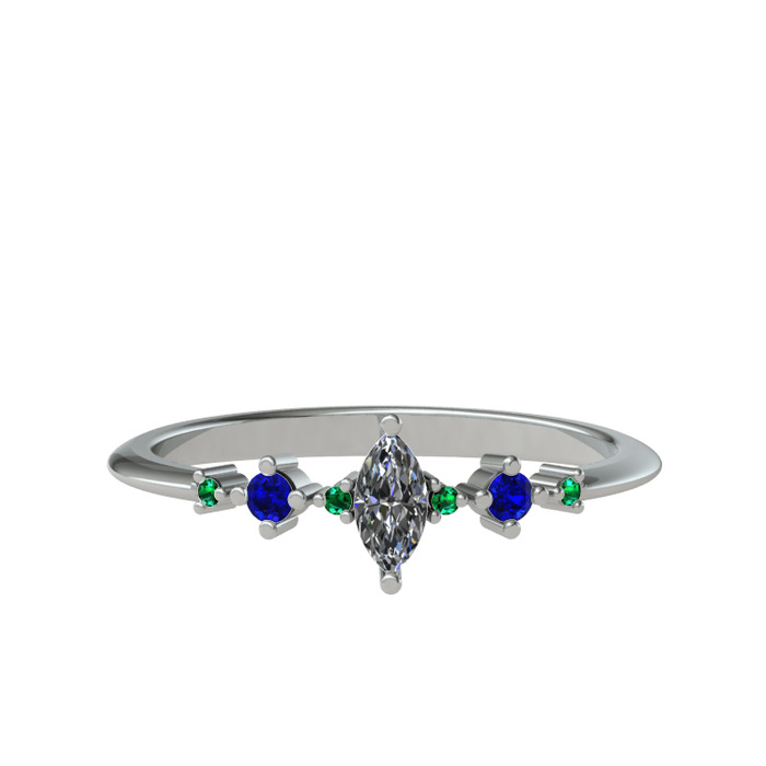 Beyaz zirkon, lab safir ve yeşil kuvars 18 ayar beyaz altın yüzük