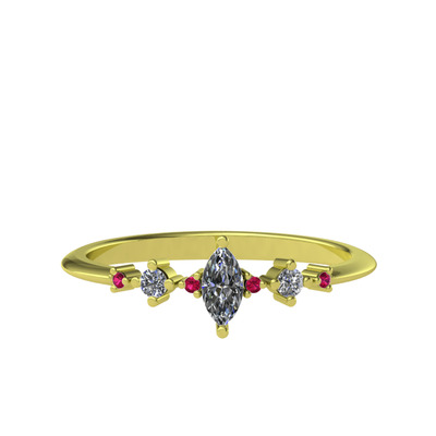 Beyaz zirkon ve rodolit garnet 925 ayar altın kaplama gümüş yüzük