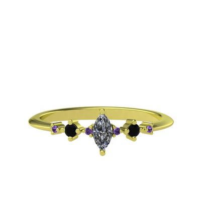 Beyaz zirkon, siyah zirkon ve ametist 925 ayar altın kaplama gümüş yüzük