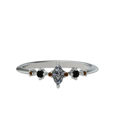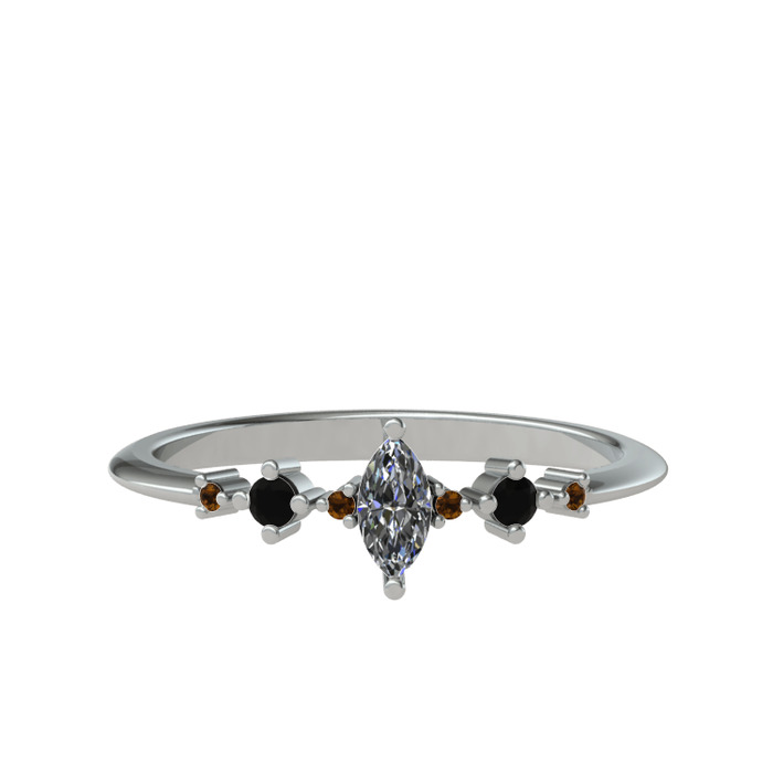 Beyaz zirkon, siyah zirkon ve dumanlı kuvars 8 ayar beyaz altın yüzük