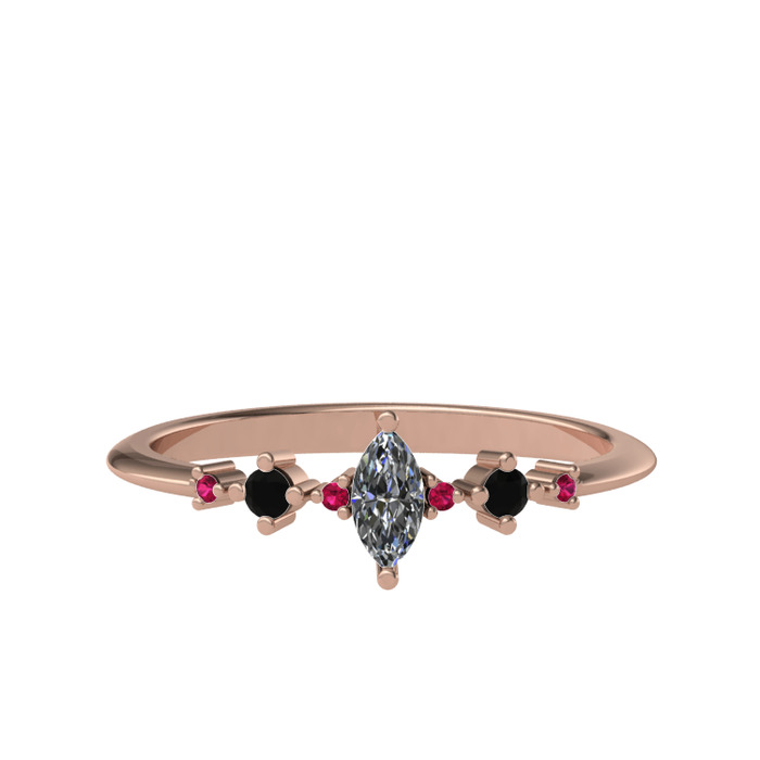 Beyaz zirkon, siyah zirkon ve rodolit garnet 18 ayar rose altın yüzük