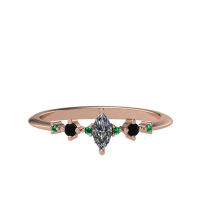 Beyaz zirkon, siyah zirkon ve yeşil kuvars 8 ayar rose altın yüzük