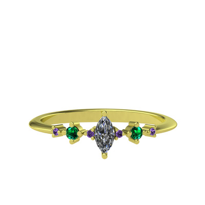 Beyaz zirkon, yeşil kuvars ve ametist 18 ayar altın yüzük