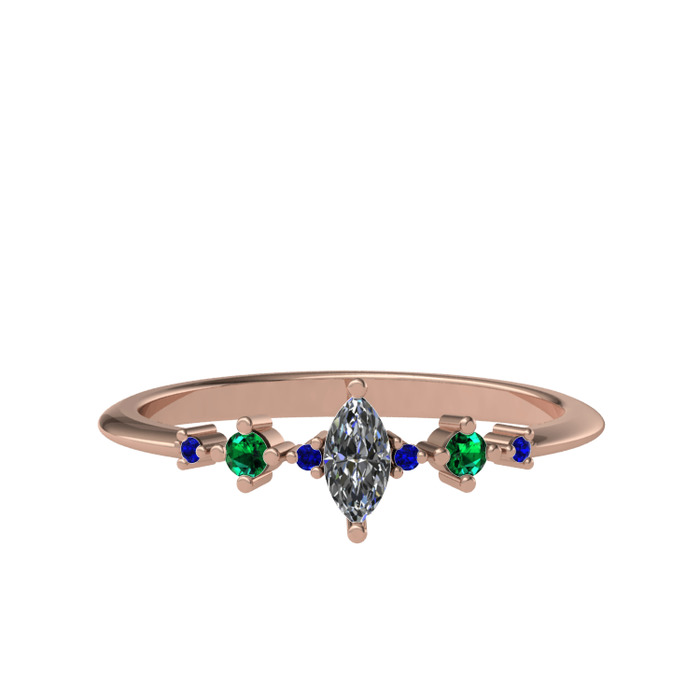 Beyaz zirkon, yeşil kuvars ve lab safir 18 ayar rose altın yüzük